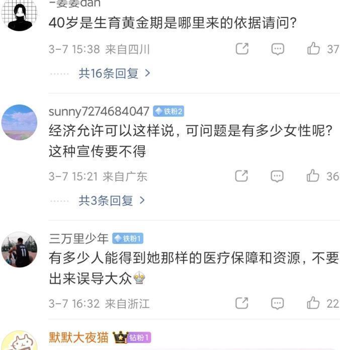 言论发酵后,网友们的观点彻底分化,每一种声音都裹挟着真切的情绪,藏着对“生育年龄”与“公众人物言论”的不同解读。一派网友全力支持李艾,直言“太通透了”,认为她打破了年龄对女性的绑架,“生育从来不是年轻人的专属,只要有准备、有条件,年龄从来不是阻碍”,还感慨李艾的勇气可嘉,“作为公众人物,敢于分享真实看法,不随波逐流,十分难得”。另一派网友则提出尖锐质疑,态度截然不同。有人直言“站着说话不腰疼”,认为李艾的观点脱离普通大众,“她有足够的财力保养身体,有精力照顾孩子,没有生活压力,自然能说出这样的话”,而普通女性40岁生育,要面临身体风险、育儿压力等诸多问题,根本无法像她一样从容。还有网友表示,作为公众人物,这样的言论可能会误导他人,“高龄生育的风险客观存在,不能轻易弱化,更不该传递‘40岁仍是黄金期’的片面观点”。